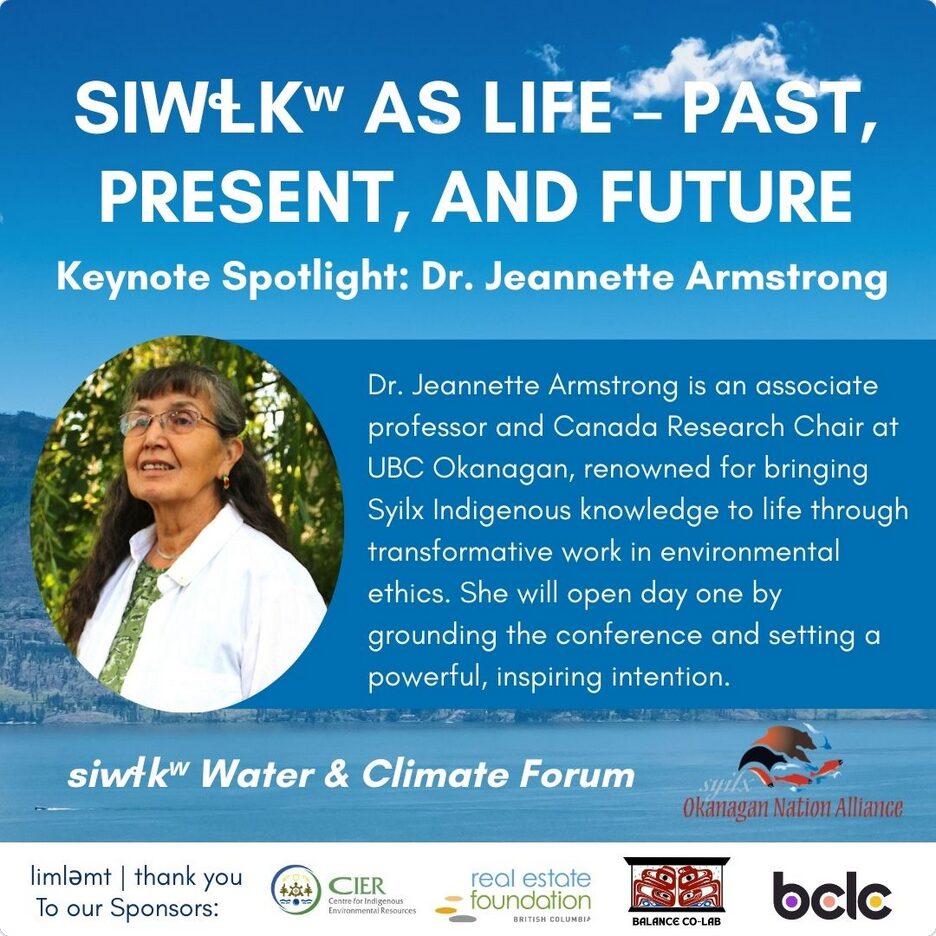 The siwɬkʷ Water and Climate Forum is a Syilx-led, action-oriented gathering designed to strengthen regional water governance, advance Indigenous food and water sovereignty, and respond to the urgent challenges of desertification and climate change in the Okanagan and Similkameen Watersheds.